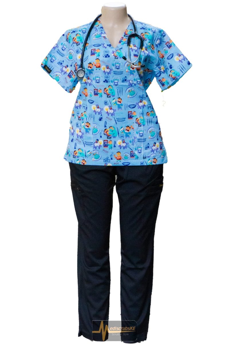 • Charming Pediatric Print: Our scrub top boasts a whimsical and engaging pediatric-themed print. It’s not just a uniform; it’s a conversation starter that puts young patients at ease during their hospital visits.