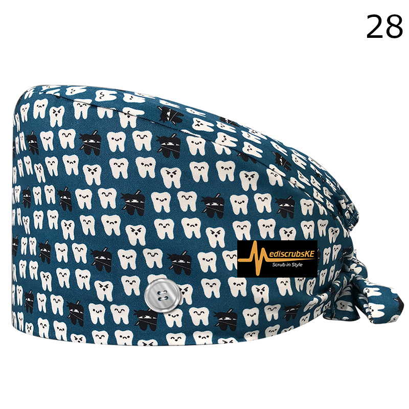 Our scrub hats with buttons and a built-in sweatband are designed to enhance comfort and functionality for healthcare professionals. The convenient buttons on each side provide a secure spot to loop your mask, reducing ear strain during long shifts. The integrated sweatband helps absorb moisture, keeping your forehead dry and comfortable even in the most demanding environments. Crafted from breathable, lightweight fabric, these scrub hats offer a snug yet adjustable fit, thanks to the tie-back design that accommodates various head sizes. Durable and machine-washable, they are easy to maintain, making them a practical addition to your daily uniform. Available in a range of colors and patterns, these hats let you stay stylish while prioritizing comfort and hygiene.