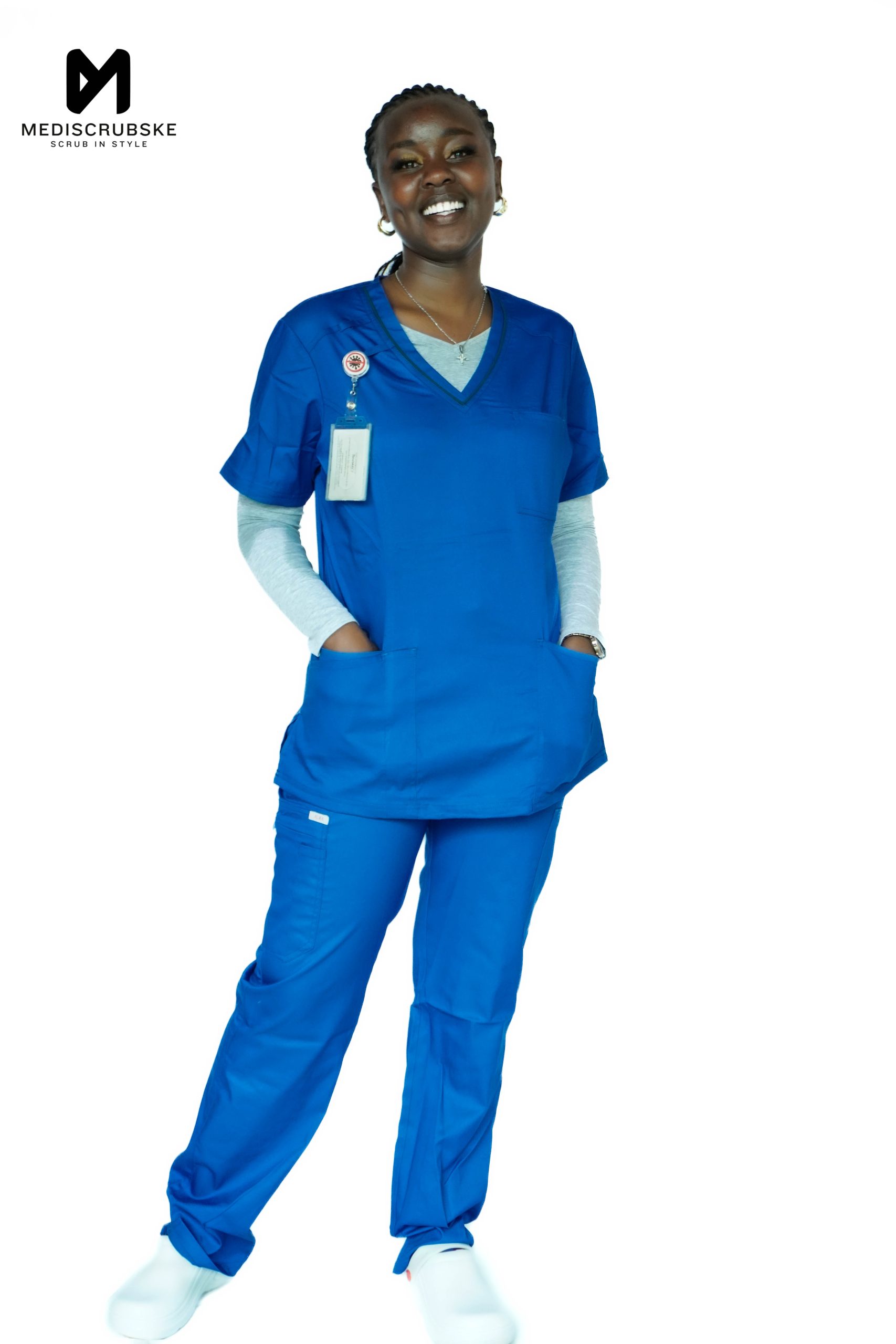 Our royal blue scrubs are designed for comfort and durability, making them ideal for nurses, doctors, and healthcare professionals in Kenya. Made from breathable, high-quality fabric, these scrubs allow easy movement during long shifts.